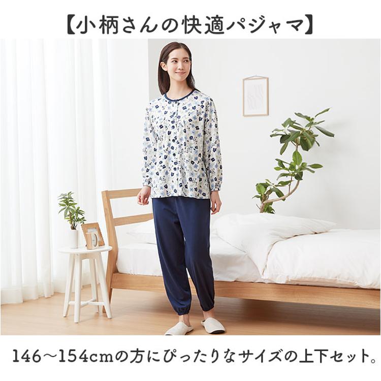 セルヴァン パジャマ 低身長 通販 ルームウェア 上下セット 部屋着 レディース 前開き 襟なし 小さいサイズ プチサイズ 長袖 小柄 女性用 春 夏 秋 裾ゴム シニア 高齢者 入院 ギフト 贈り物 おしゃれ