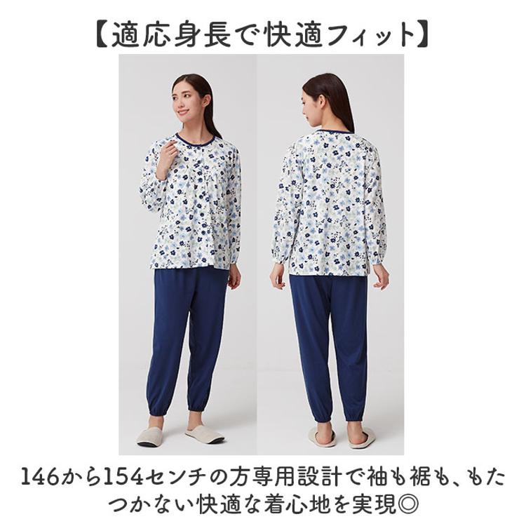 セルヴァン パジャマ 低身長 通販 ルームウェア 上下セット 部屋着 レディース 前開き 襟なし 小さいサイズ プチサイズ 長袖 小柄 女性用 春 夏 秋 裾ゴム シニア 高齢者 入院 ギフト