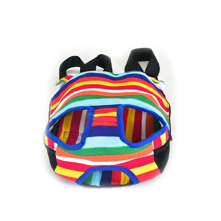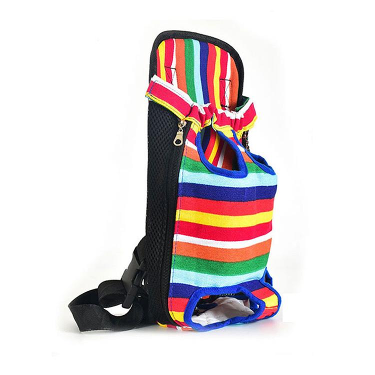 ・ペットの両手足と尻尾をバッグから出して装着する、フィット感抜群のキャリーバッグ。飼い主さんを身近に感じることのできる密着度の高いデザインなので、お出掛け中もワンちゃんリラックス。