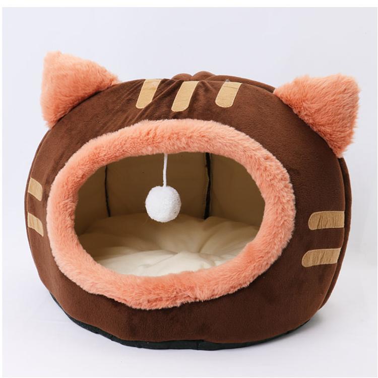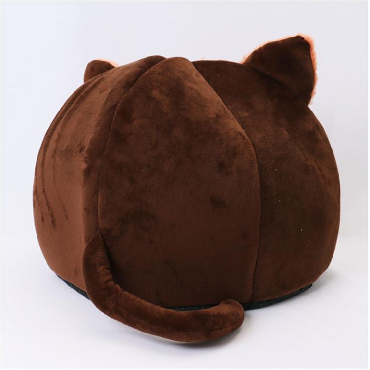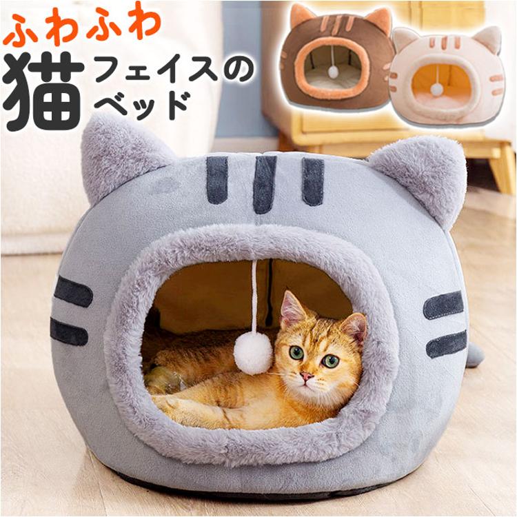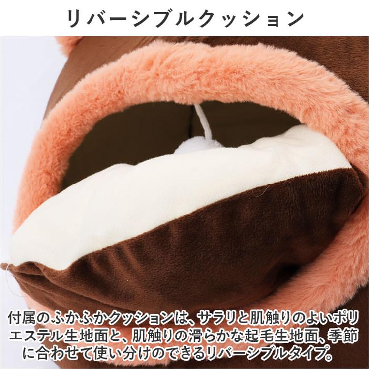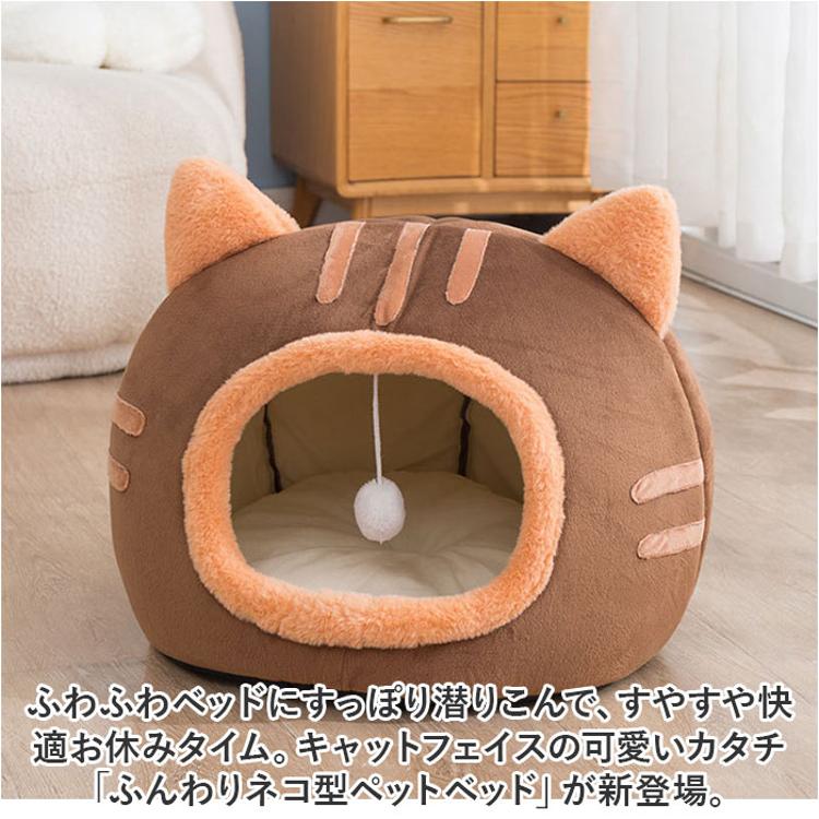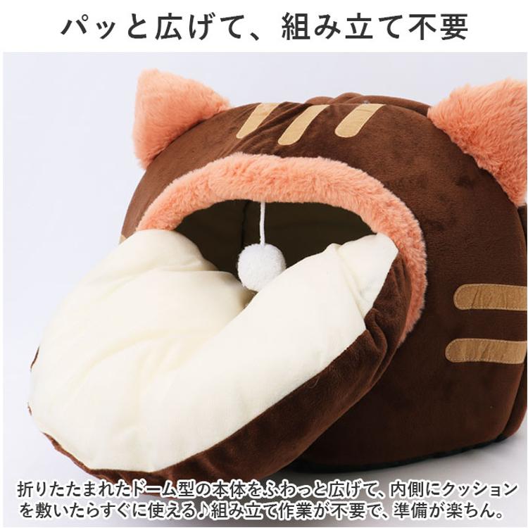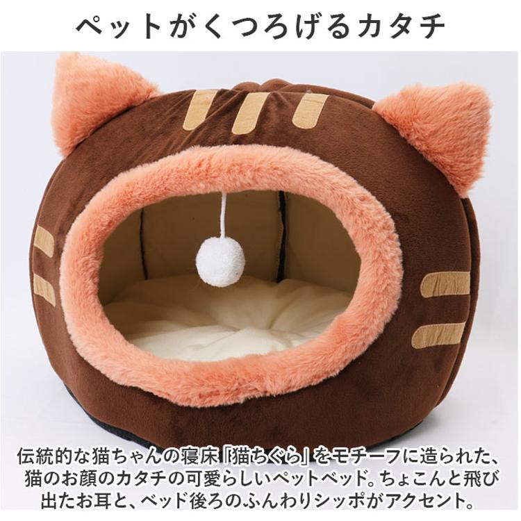 ・伝統的な猫ちゃんの寝床「猫ちぐら」をモチーフに造られた、猫のお顔のカタチの可愛らしいペットベッド。ちょこんと飛び出たお耳と、ベッド後ろのふんわりシッポがアクセント。