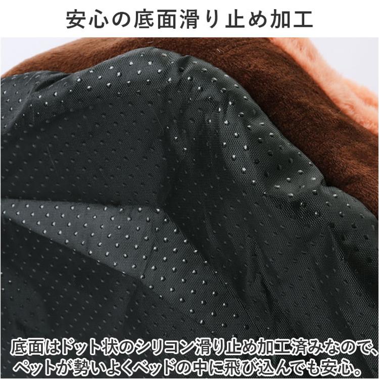 ・底面はドット状のシリコン滑り止め加工済みなので、ペットが勢いよくベッドの中に飛び込んでも安心。