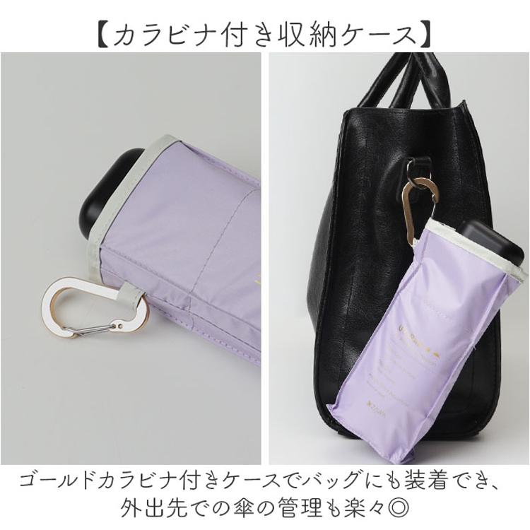 ・ゴールドカラビナ付きケースでバッグのハンドルに装着でき、外出先での傘の管理も楽々◎