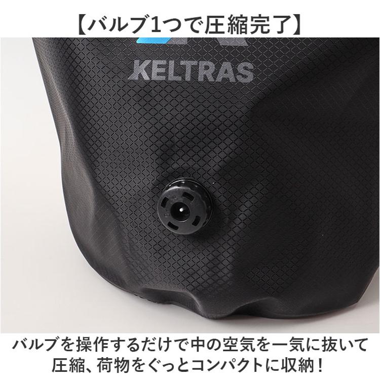 ・バルブで圧縮 KELTRAS ドライコンプバッグ。濡れた衣類をコンパクトに収納。