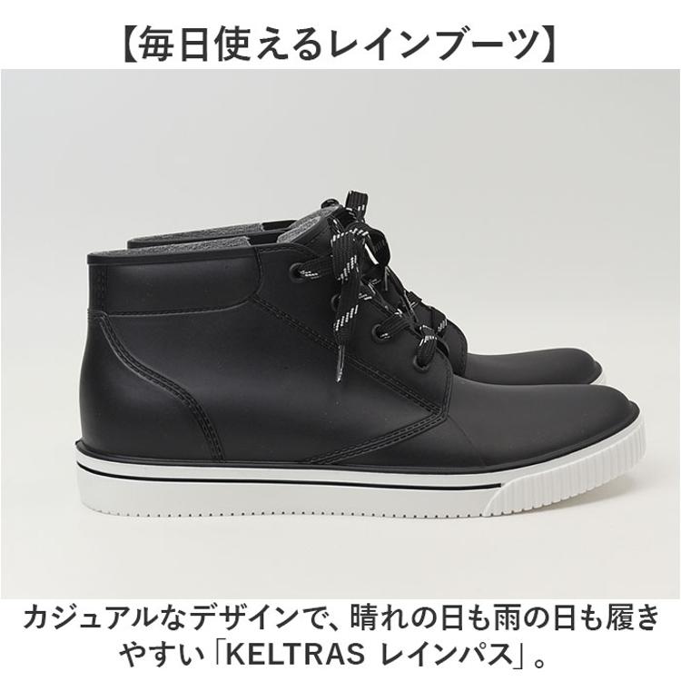 ・カジュアルなデザインで、晴れの日も雨の日も履きやすい「KELTRAS レインパス」。