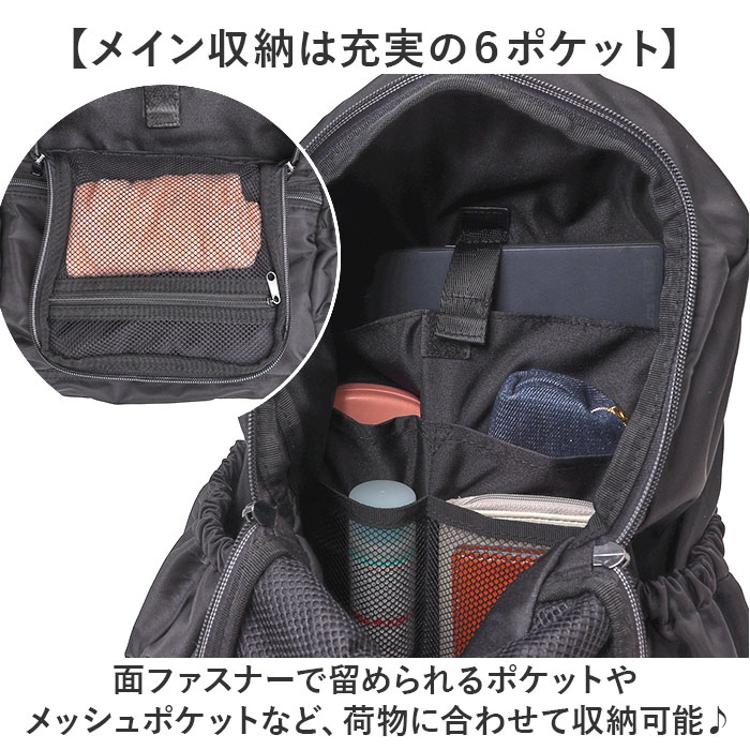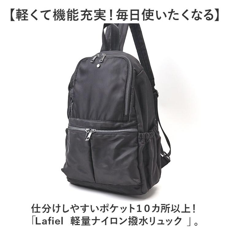 ・仕分けしやすいポケット10カ所以上!「Lafiel 軽量ナイロン撥水リュック 」。