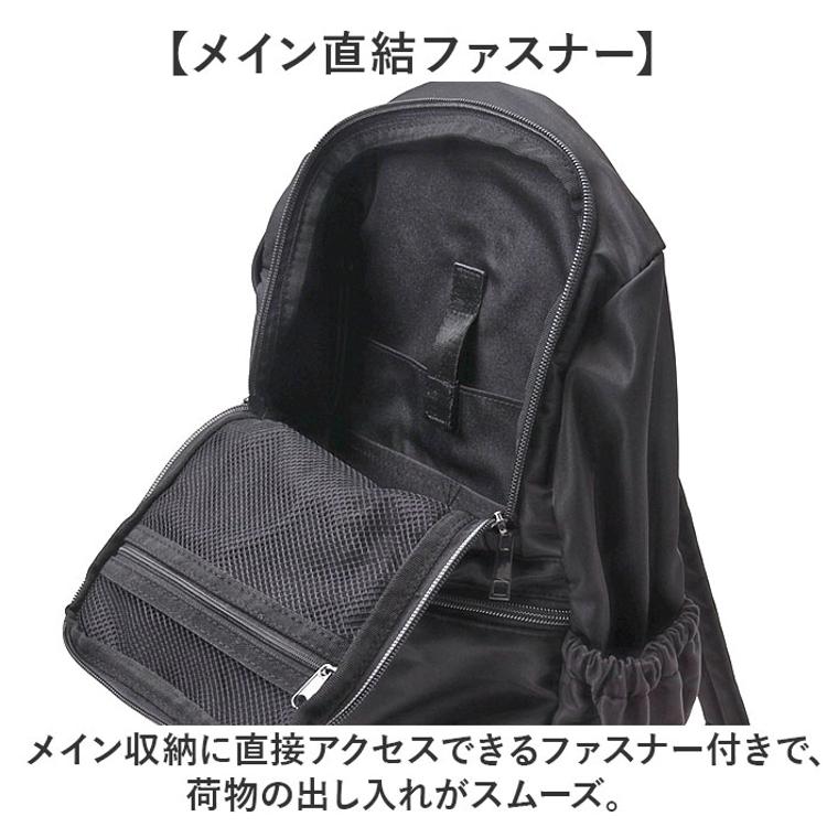 ・メイン収納に直接アクセスできるファスナー付きで、荷物の出し入れがスムーズ。
