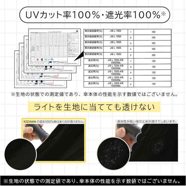 ・遮光率・UVカット率ともに100%認定の最高ランク生地で、強い日差しからお肌を徹底ガード◎