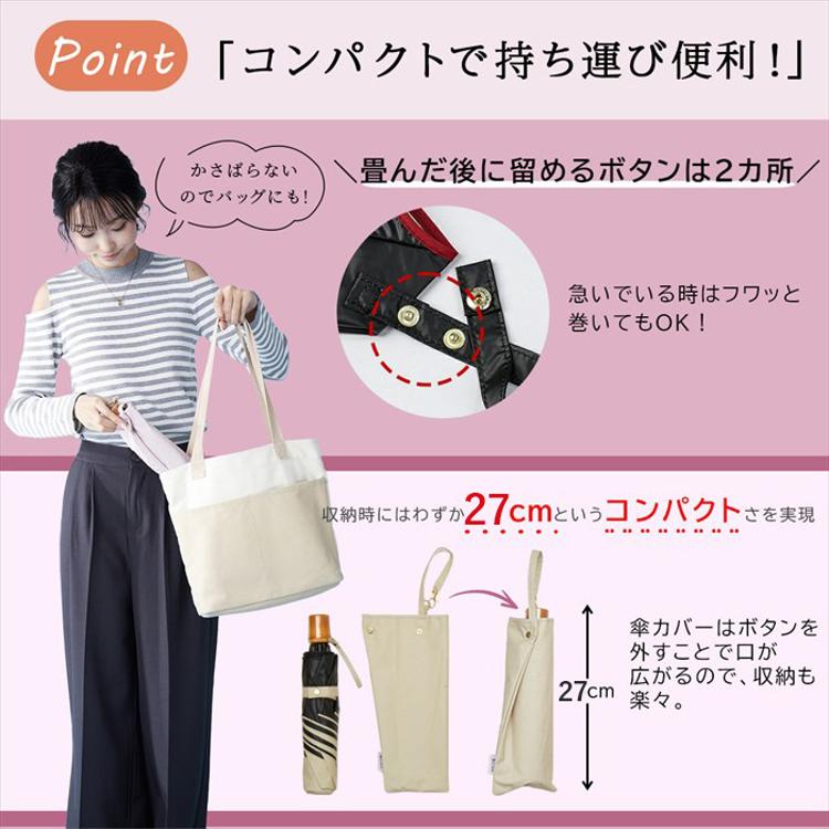 ・フック付きケースでバッグのハンドルに装着でき、シルキーな傘をきれいに持ち運び!