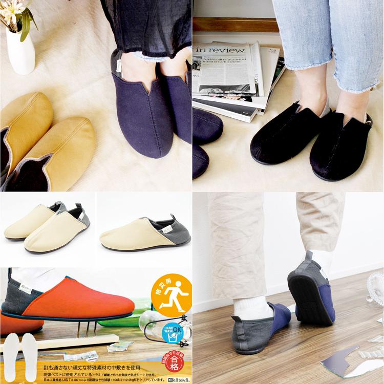 防災スリッパ 踏み抜き防止 通販 防災ルームシューズ スリッパ 防災 携帯スリッパ 折らない ルームシューズ バブーシュ 室内履き ルームスリッパ 防災グッズ 非常時 安全 ガラス片 災害 地震 避難 おしゃれ Kateva Guard KTV-G 防災用品