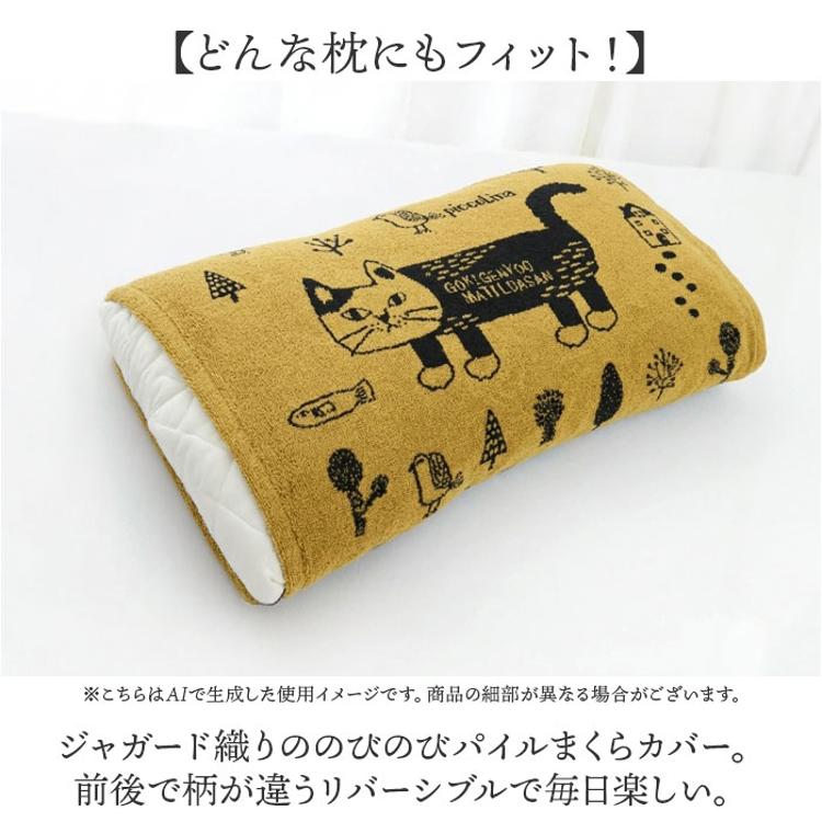・ジャガード織りののびのびパイルまくらカバー。前後で柄が違うリバーシブルで毎日楽しい。