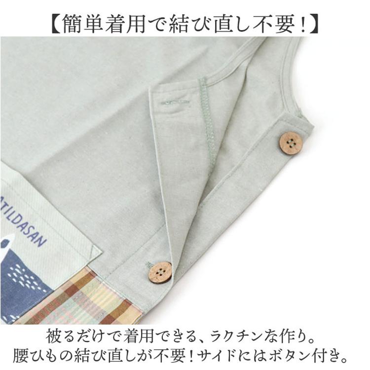 ・被るだけで着用できる、ラクチンな作り。腰ひもの結び直しが不要!サイドにはボタン付き。