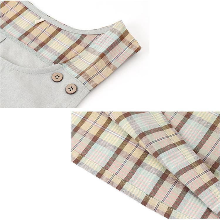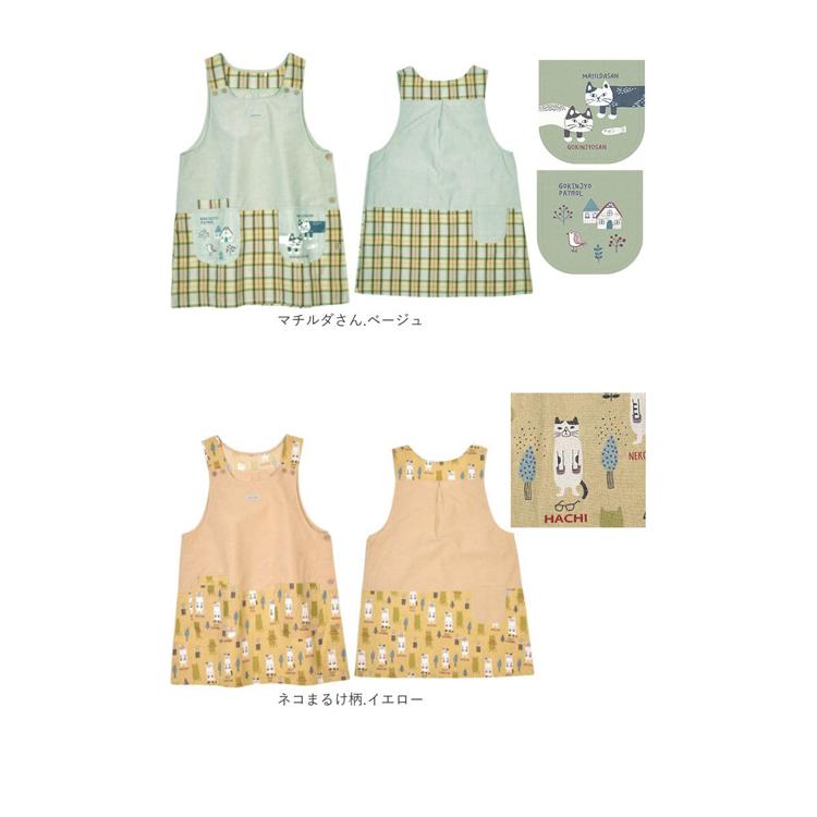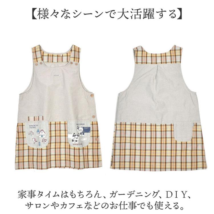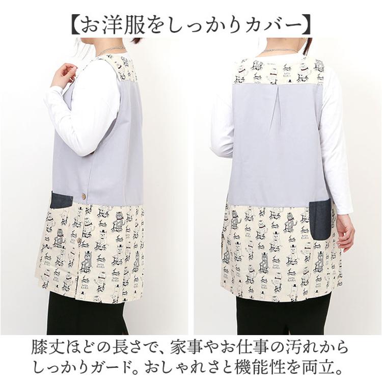 ・膝丈ほどの長さで、家事やお仕事の汚れからしっかりガード。おしゃれさと機能性を両立。