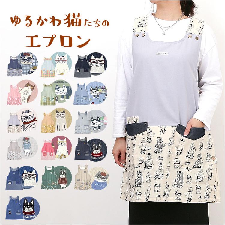 エプロン おしゃれ 通販 猫 ねこ ネコ 着脱が簡単 レディース シンプル 無地 ポケット キッチンファブリック かわいい 機能的 動きやすい キッチン雑貨 家事 料理 保育士 介護士 母の日 KUSUGURU-JP クスグルジャパン ギフト 贈り物