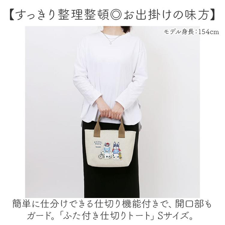 ・簡単に仕分けできる仕切り機能付きで、開口部もガード。「ふた付き仕切りトート」Sサイズ。