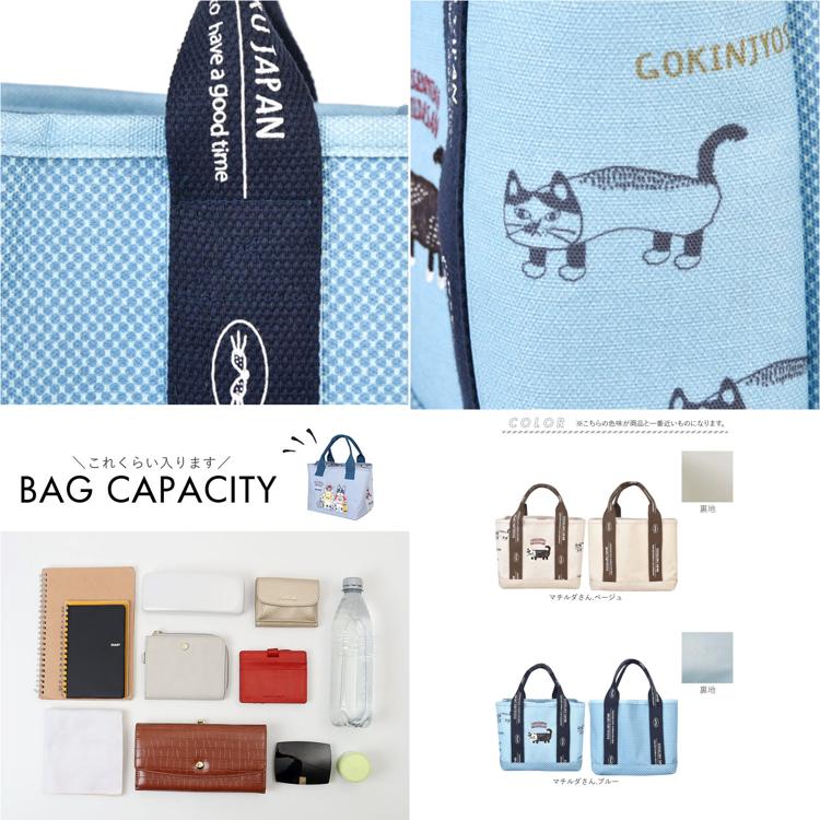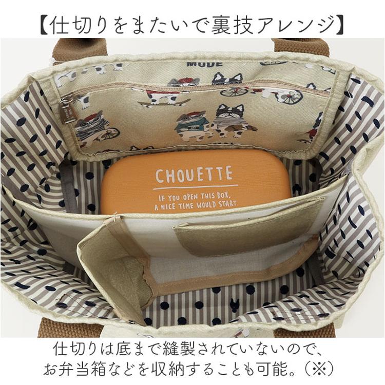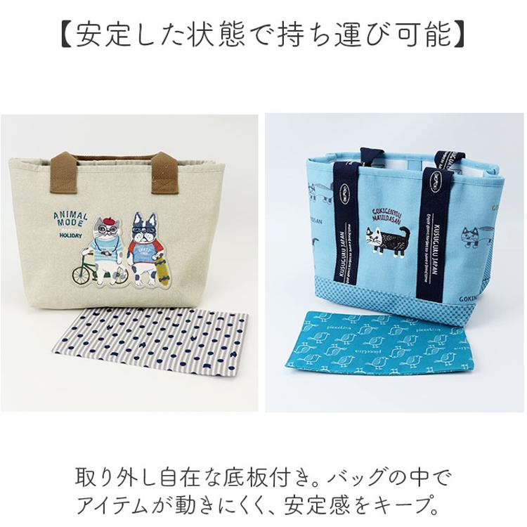 ・仕切りは底まで縫製されていないので、お弁当箱などを収納することも可能。