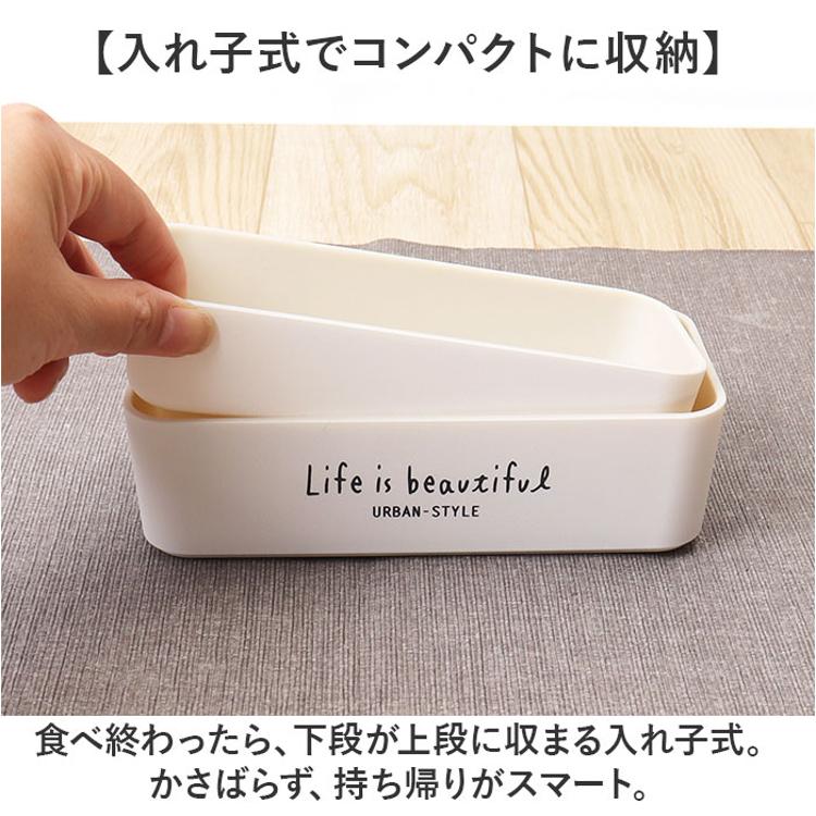 ・食べ終わったら、下段が上段に収まる入れ子式。かさばらず、持ち帰りがスマート。