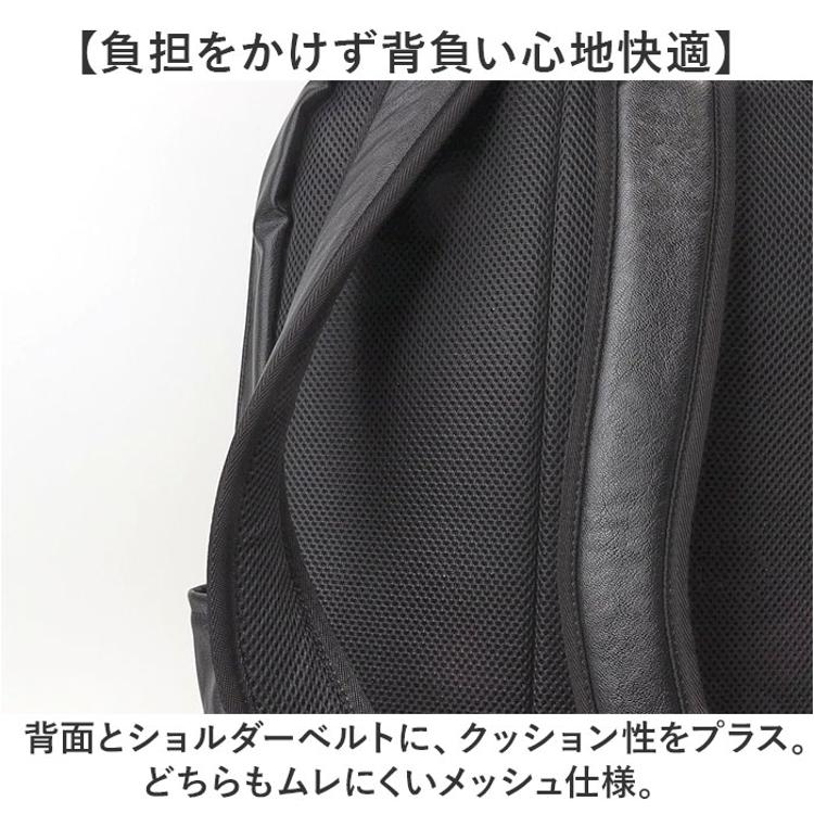 ・背面とショルダーベルトに、クッション性をプラス。どちらもムレにくいメッシュ仕様。