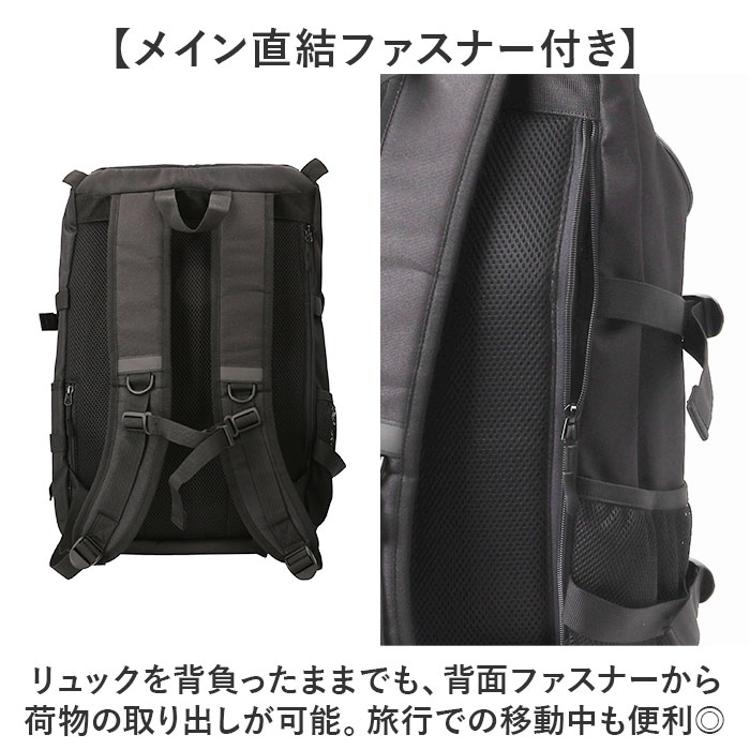 ・リュックを背負ったままでも、背面ファスナーから荷物の取り出しが可能。旅行での移動中も便利◎
