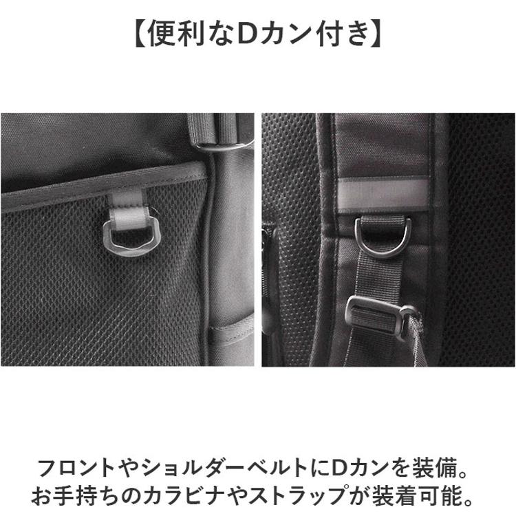 ・フロントやショルダーベルトにDカンを装備。お手持ちのカラビナやストラップが装着可能。