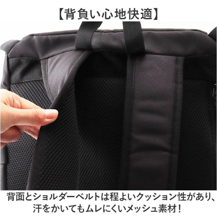 ・背面とショルダーベルトは程よいクッション性があり、汗をかいてもムレにくいメッシュ素材!