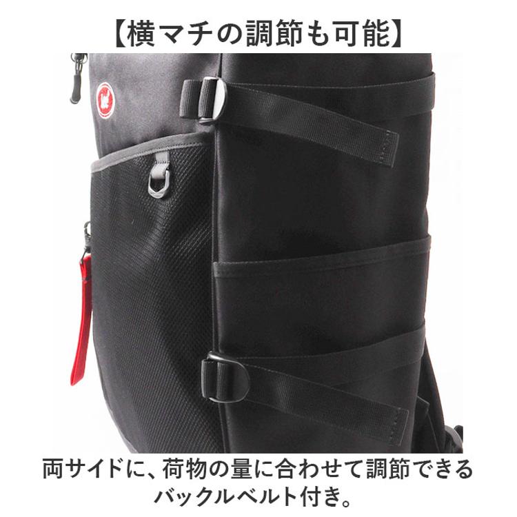・両サイドに、荷物の量に合わせて調節できるバックルベルト付き。