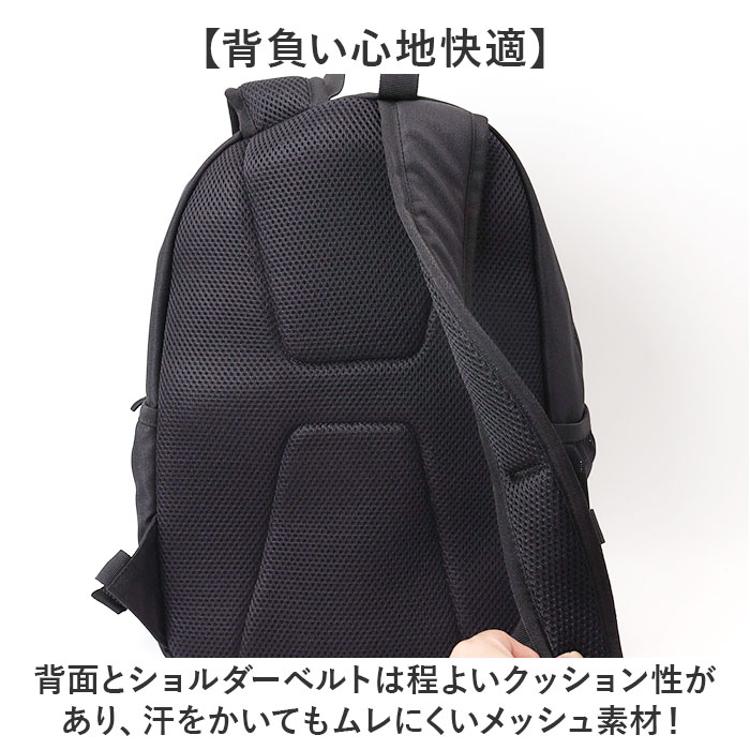 ・背面とショルダーベルトは程よいクッション性があり、汗をかいてもムレにくいメッシュ素材!