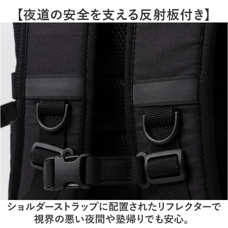 ・ショルダーストラップに配置されたリフレクターで視界の悪い夜間や塾帰りでも安心。