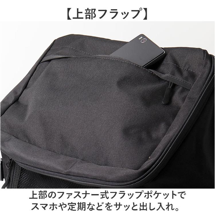 ・上部のファスナー式フラップポケットでスマホや定期などをサッと出し入れ。