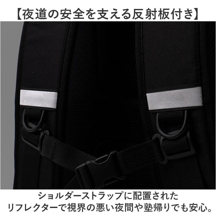 ・ショルダーストラップに配置されたリフレクターで視界の悪い夜間や塾帰りでも安心。