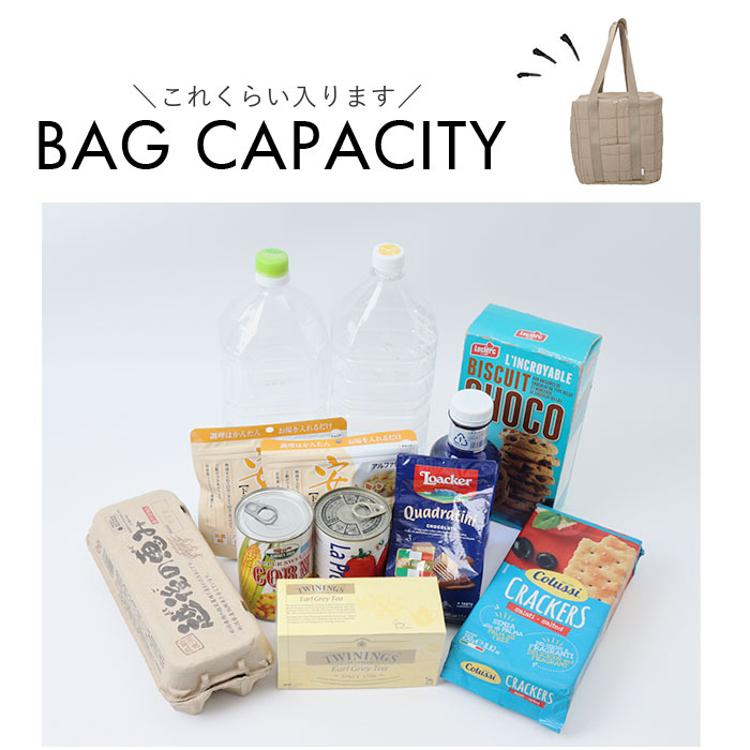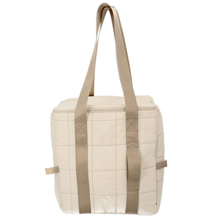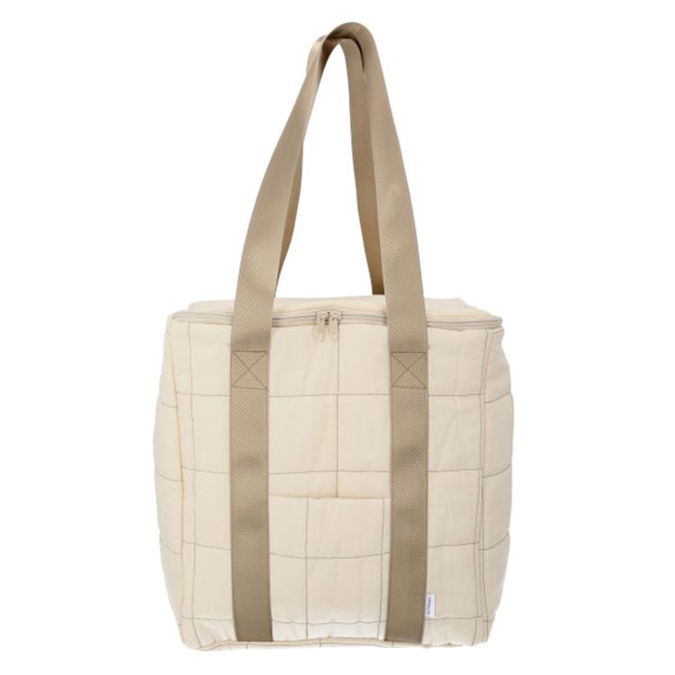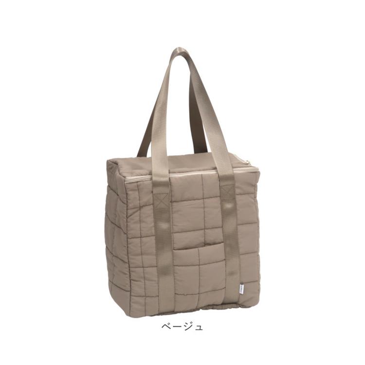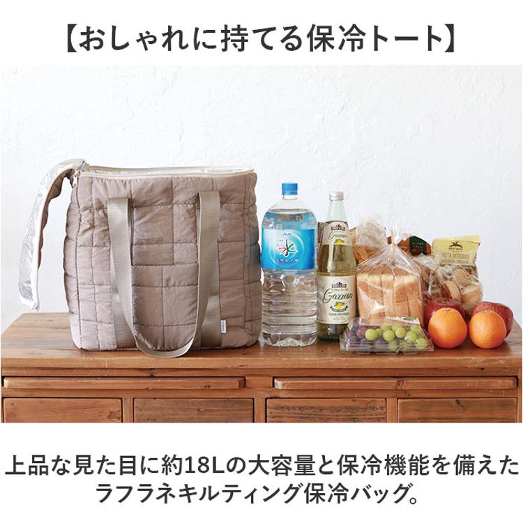 ・上品な見た目に約18Lの大容量と保冷機能を備えたラフラネキルティング保冷バッグ。