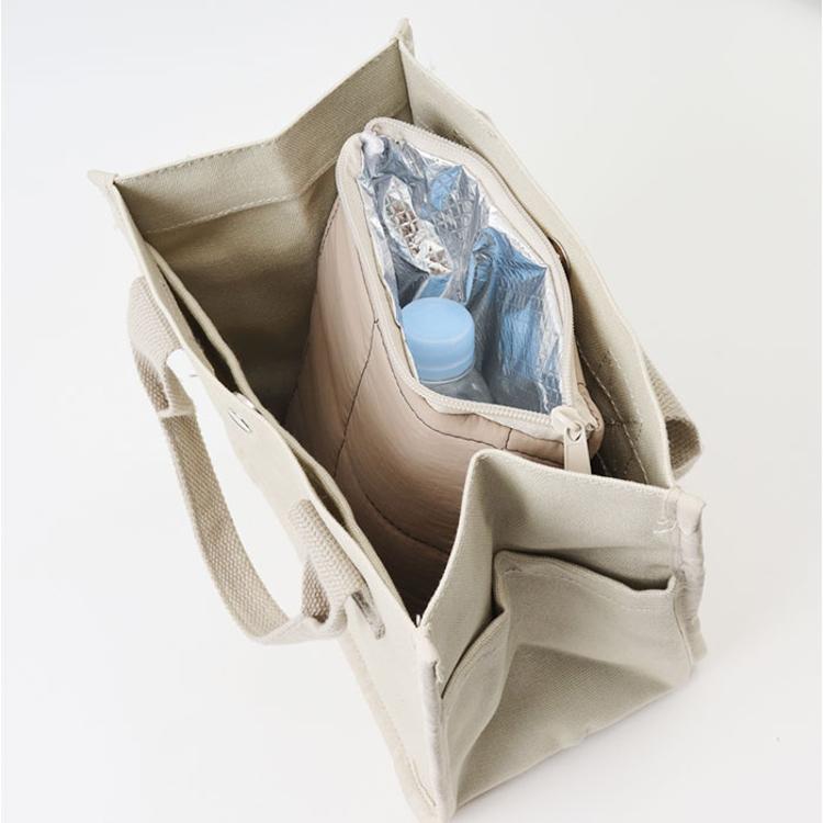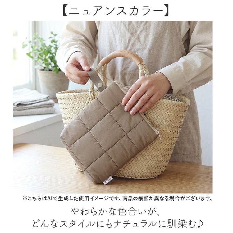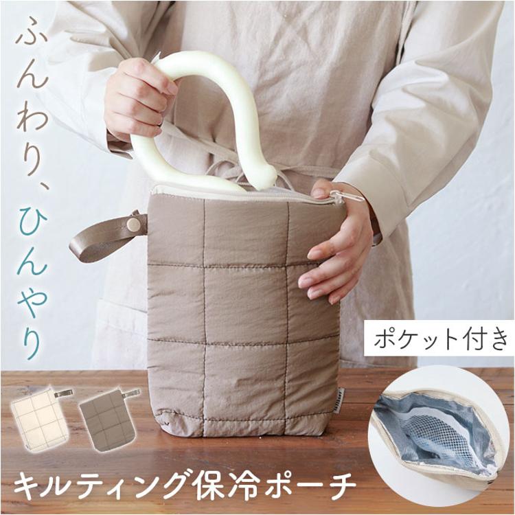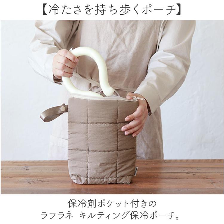 ・保冷剤ポケット付きのラフラネ キルティング保冷ポーチ。