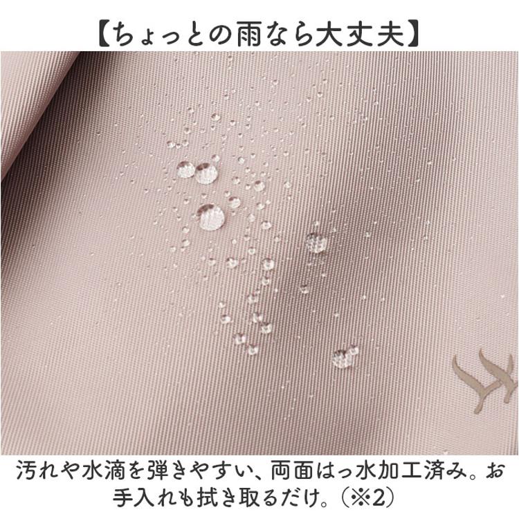 ・汚れや水滴を弾きやすい、両面はっ水加工済み。お手入れも拭き取るだけ。