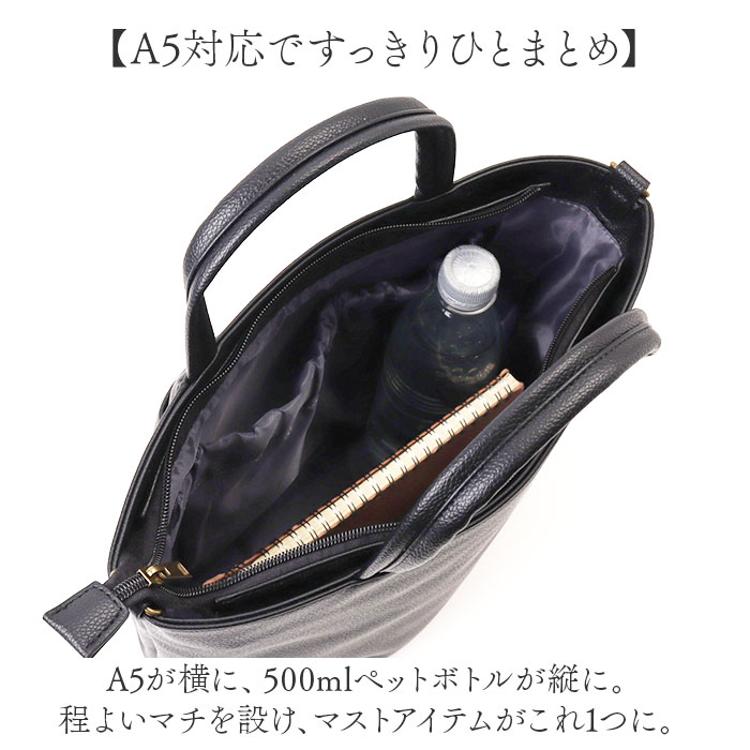 ・A5が横に、500mlペットボトルが縦に。程よいマチを設け、マストアイテムがこれ1つに。