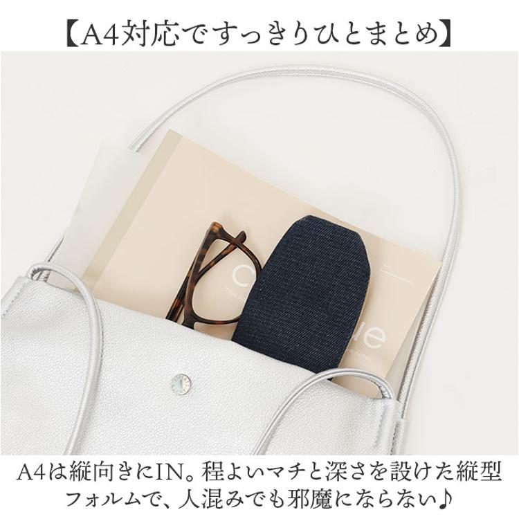 ・A4は縦向きにIN。程よいマチと深さを設けた縦型フォルムで、人混みでも邪魔にならない♪