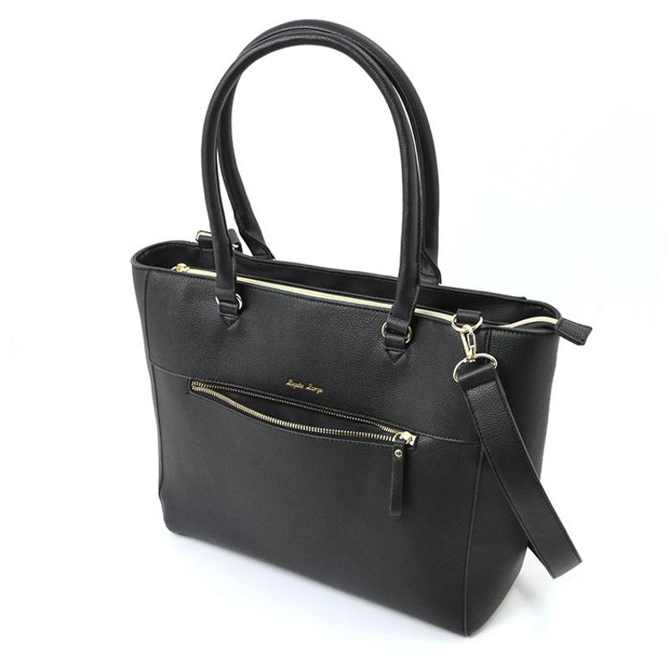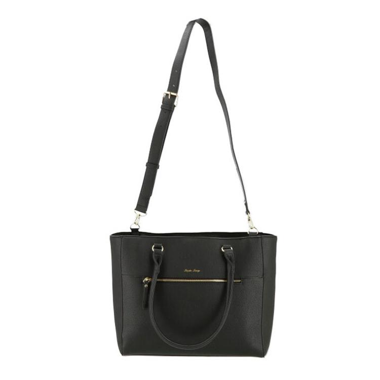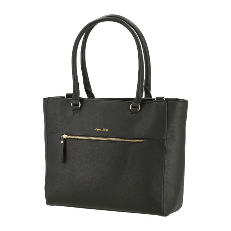 ・シボ感のあるフェイクレザーを使用し、ゴールドの金具使いが上品な印象を演出してくれるトートバッグ。