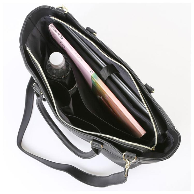 ・開口部はファスナー式で、バッグの内側が見えてしまう心配がなく、プライバシーをしっかり確保。