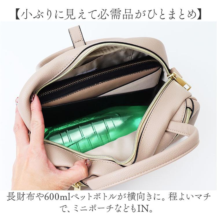 ・長財布や600mlペットボトルが横向きに。程よいマチで、ミニポーチなどもIN。