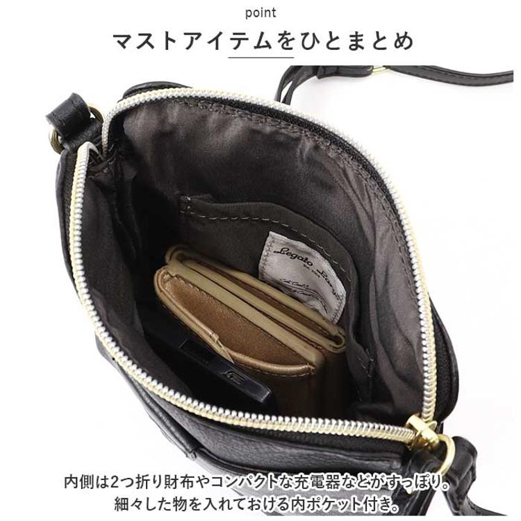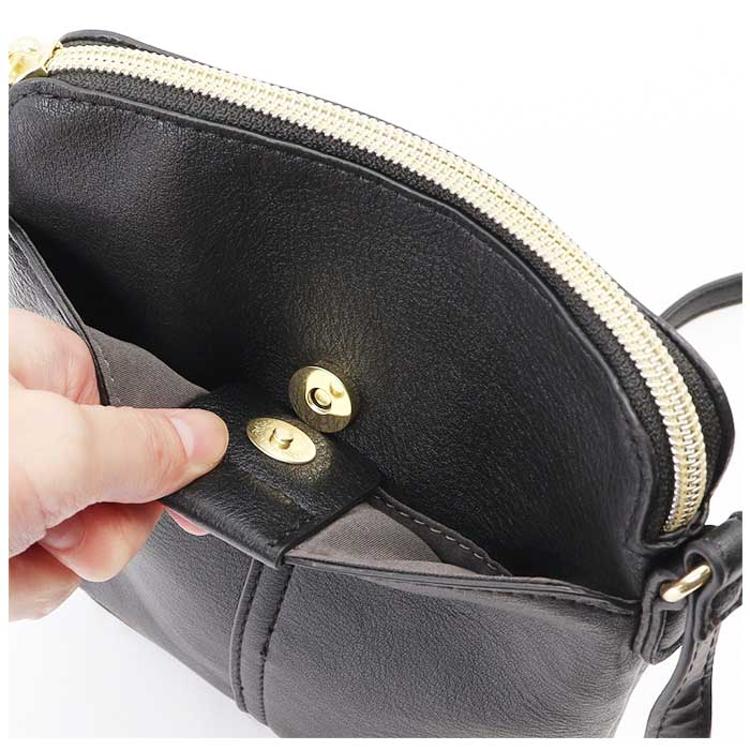 ・内側は2つ折り財布やコンパクトな充電器などがすっぽり。細々した物を入れておける内ポケット付き。