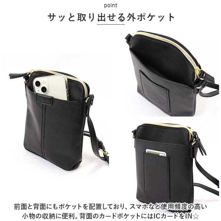 ・前面と背面にもポケットを配置しており、スマホなど使用頻度の高い小物の収納に便利。背面のカードポケットにはICカードをIN☆