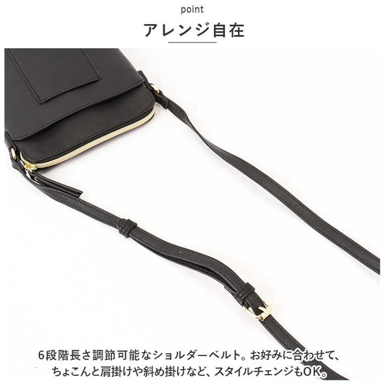 ・6段階長さ調節可能なショルダーベルト。お好みに合わせて、ちょこんと肩掛けや斜め掛けなど、スタイルチェンジもOK。