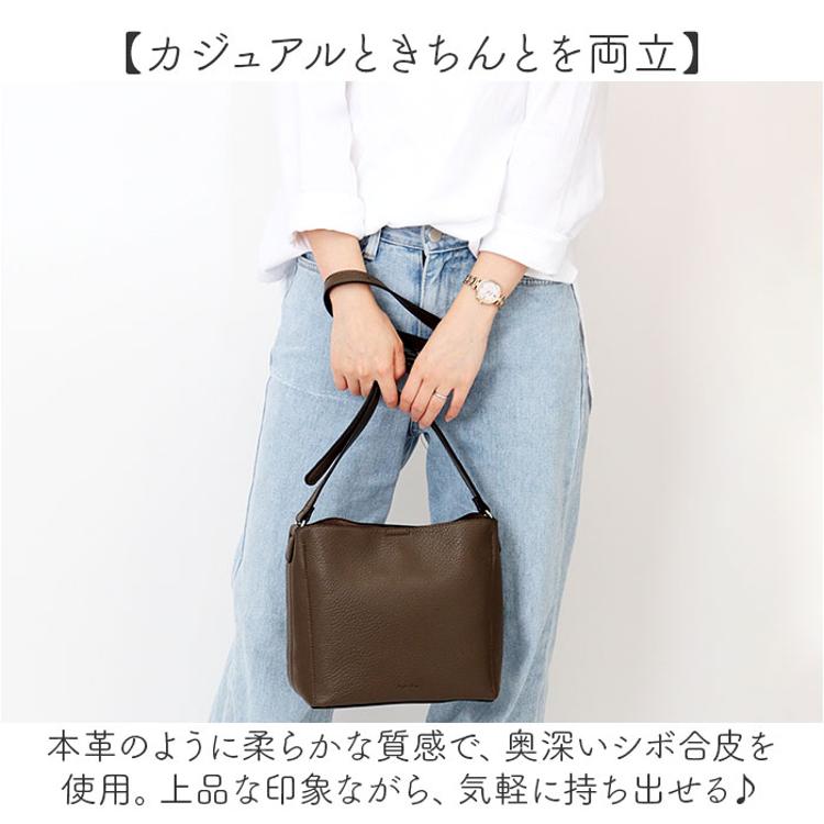 ・本革のように柔らかな質感で、奥深いシボ合皮を使用。上品な印象ながら、気軽に持ち出せる♪