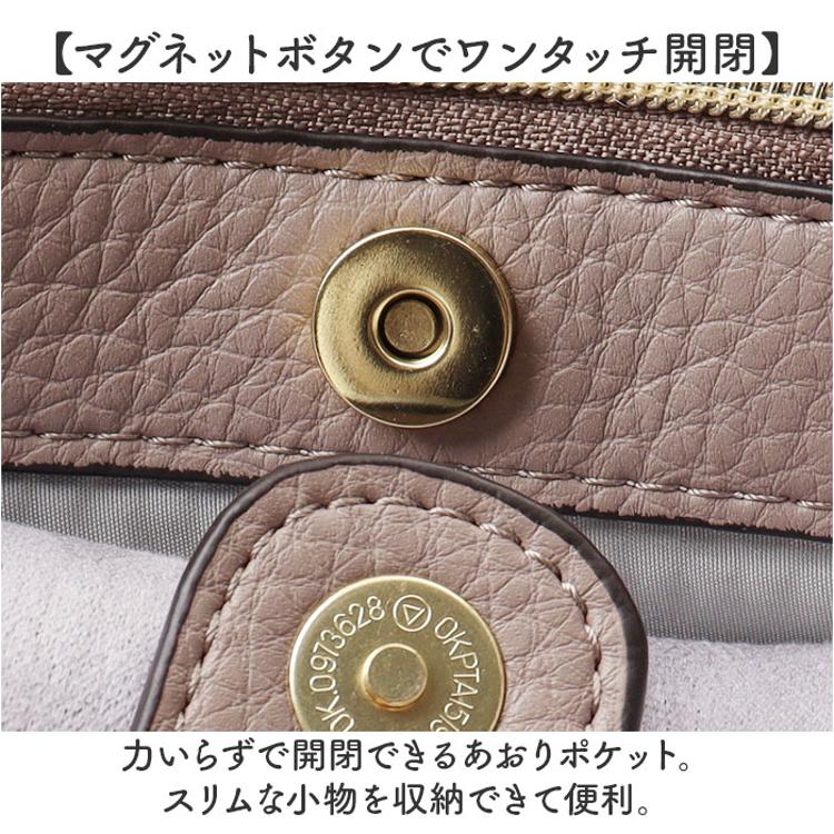 ・本革のように柔らかな質感で、奥深いシボ合皮を使用。上品な印象ながら、気軽に持ち出せる♪