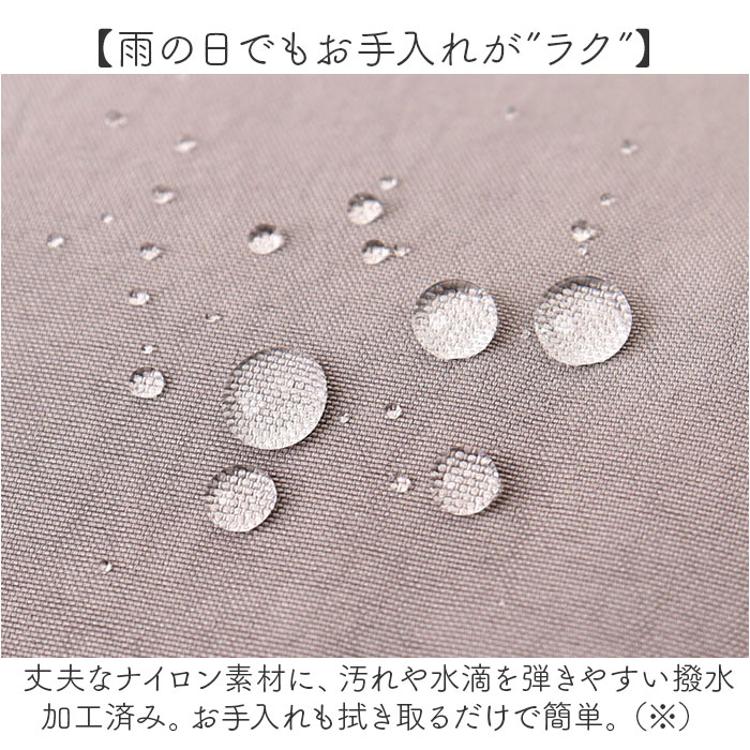 ・丈夫なナイロン素材に、汚れや水滴を弾きやすい撥水加工済み。お手入れも拭き取るだけで簡単。