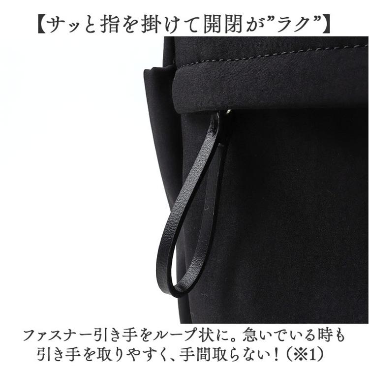 ・背面ポケットにスマホを収納すれば、移動中もノンストレス◎ファスナー付きでこぼれ落ち防止。