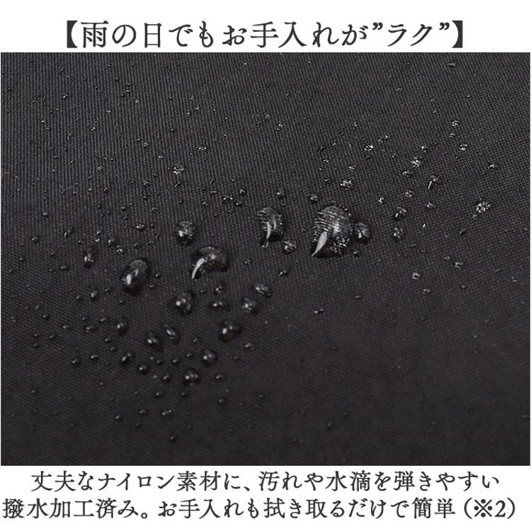 ・丈夫なナイロン素材に、汚れや水滴を弾きやすい撥水加工済み。お手入れも拭き取るだけで簡単。
