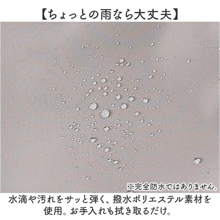 ・水滴や汚れをサッと弾く、撥水ポリエステル素材を使用。お手入れも拭き取るだけ。