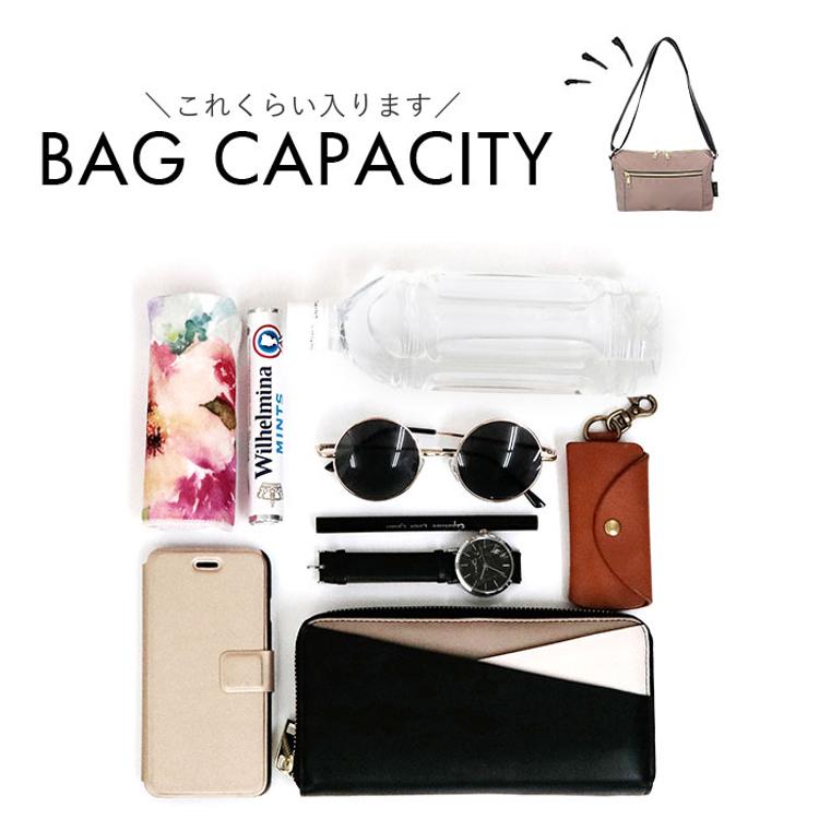 ・長財布や500mlペットボトルが横向きにすっぽり。お出かけや旅行など、マルチに活躍◎