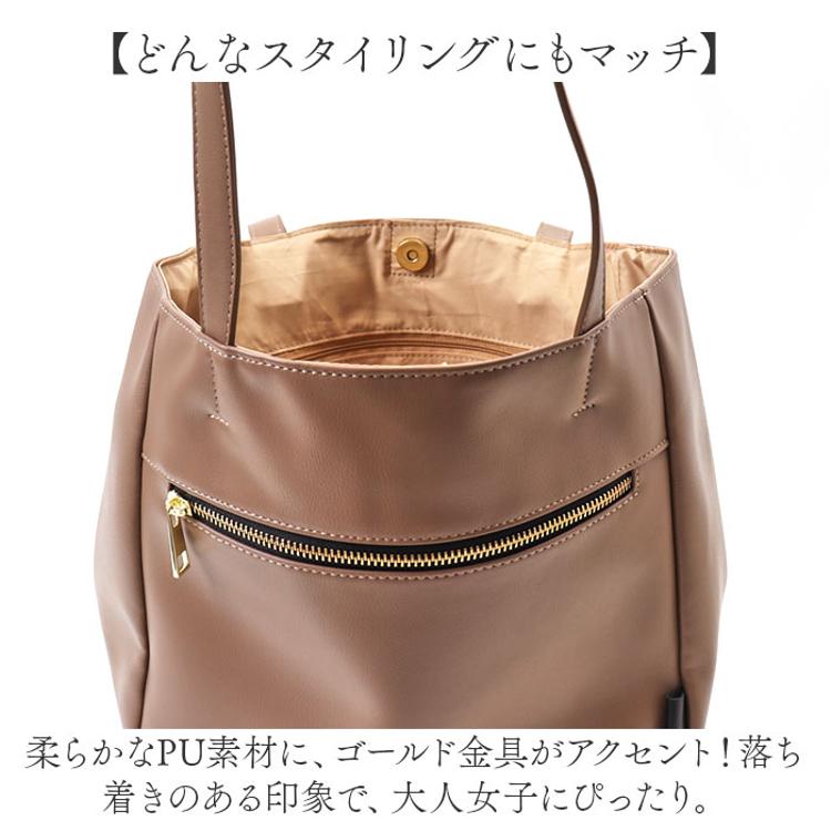 ・柔らかなPU素材に、ゴールド金具がアクセント!落ち着きのある印象で、大人女子にぴったり。