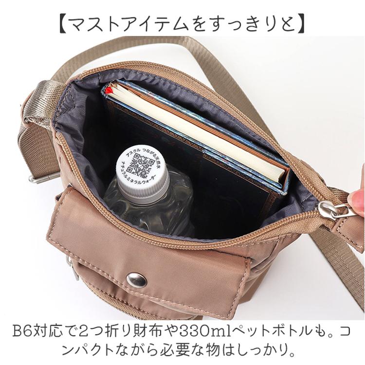 ・B6対応で2つ折り財布や330mlペットボトルも。コンパクトながら必要な物はしっかり。