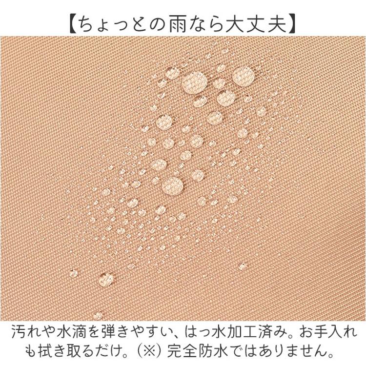・汚れや水滴を弾きやすい、はっ水加工済み。お手入れも拭き取るだけ。